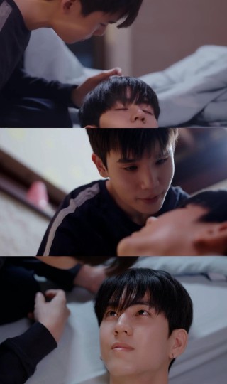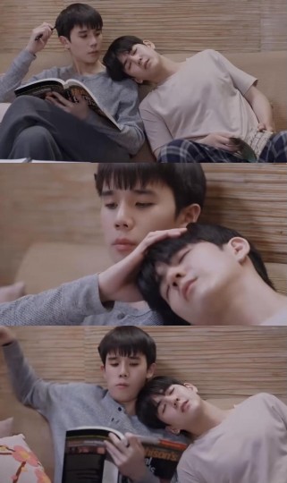 这里Thap俯身过来,依旧是想触碰又收回的手,只是和In对视笑着说「嗯,真好」 BGM一进,两个人一人靠着床,一人靠着床头,Thap看着In,好像什么话都没说,但在两个人的聊天中,两颗心越来越近..