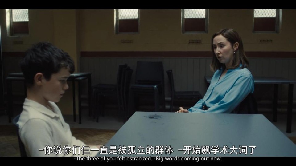 至于家长和老师,全剧几乎所有的大人都对年轻孩子的情绪动向表现出了低感知和理解受限。黑人警官和儿子的交流听着像在两个图层,隐约怀疑儿子也有可能遭受霸凌(学校以及社媒)之后,却又放过这个进一步交流的机会。Ryan因为向Jamie提供凶器被捕,Jamie曾向心理专家透露自己和Ryan以及Tommy三人在学校里是会被霸凌的对象,作为未成年Ryan大概率会和Jamie一样接受心理评估,但是与案件基本无关的Tommy,对于他的霸凌还会有人继续关注吗?黑人女孩在听到老师提及要请心理咨询时,瞬间情绪失控逃离教室,老师共情流泪但是依旧挽留未果,这种请专业人士前来解决问题的做法似乎是正确流程,但是在女孩看来,怎么不是在向她强调她所厌恶的“你是有问题的”呢?