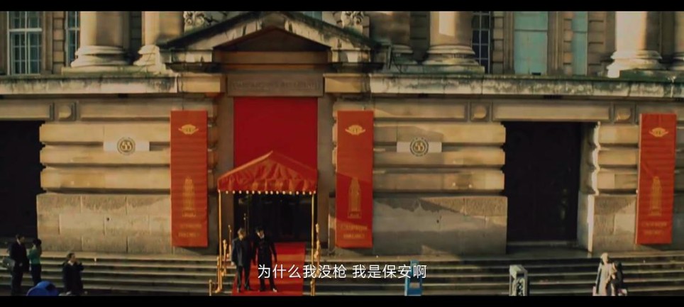 还是同一个演员,真的很难不把他们联系在一起。且不说这个门卫角色如果删掉其实一点也不影响剧情,所以我才可以肯定是玩梗和致敬。除此之外,这部片的导演马修沃恩是《两杆大烟枪》的监制。 本人《两杆大烟枪》狂热粉,看到这个太开心了😂😂