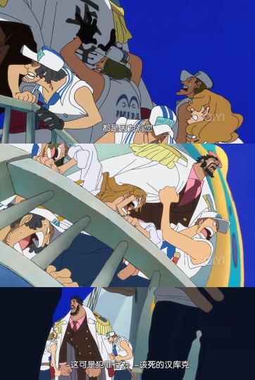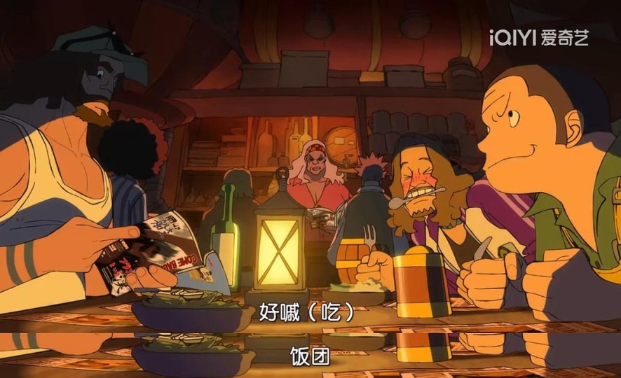 下面是自己觉得比较妙的几处片段: 1. 鹰眼粉丝为了寻索隆粉丝开心,左手拿刀、右手拿叉、嘴里叼着勺子说“好吃”,同时下一句说“饭团”。日文里饭团和索隆的招式鬼斩谐音(笑死);